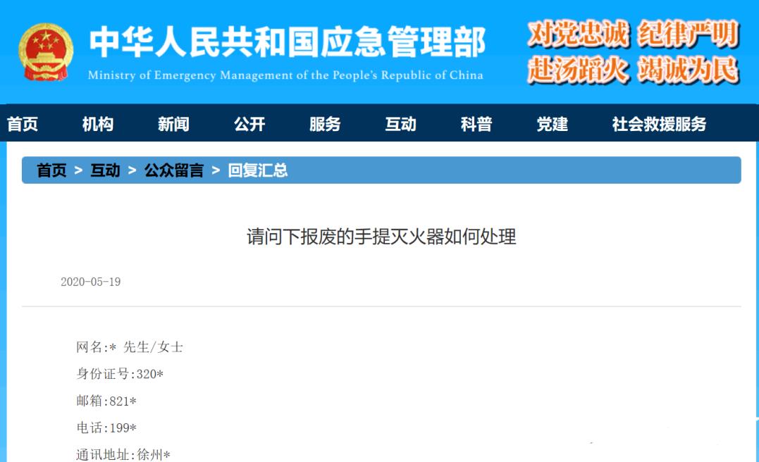 回復(fù):您好!您的問(wèn)題已收悉,現(xiàn)答復(fù)如下。國(guó)家標(biāo)準(zhǔn)《建筑滅火器配置驗(yàn)收及檢查規(guī)范》(GB 50444-2008)5.1.4條規(guī)定:“需維修、報(bào)廢的滅火器應(yīng)由滅火器生產(chǎn)企業(yè)或?qū)I(yè)維修單位進(jìn)行! 應(yīng)急管理部歸口的行業(yè)標(biāo)準(zhǔn)《滅火器維修》(GA 95-2015)“7 報(bào)廢與回收處置”中對(duì)于滅火器的回收處置方式和回收單位也作了相關(guān)規(guī)定,明確“維修機(jī)構(gòu)應(yīng)向社會(huì)提供滅火器報(bào)廢回收服務(wù)”。