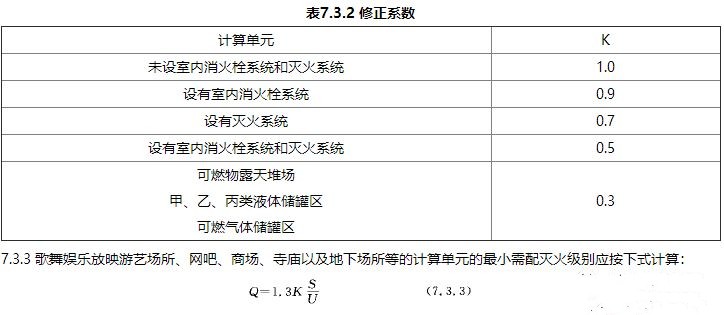 計(jì)算公式: 單元最小滅火級(jí)別Q(A或B)=K(修正系數(shù),查表)×設(shè)置滅火器場(chǎng)所的單元面積(㎡)÷火災(zāi)類別的滅火級(jí)別最大保護(hù)面積(查表,㎡/A或㎡/B)