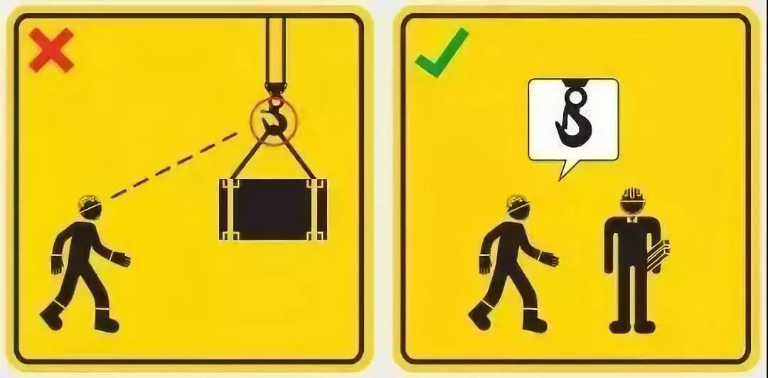 禁止從吊物下穿行 直接在吊物下工作或者步行是不安全的,因?yàn)榈跷锟赡軙?huì)砸向你。 吊物是指一個(gè)臨時(shí)被吊起,懸在空中的物體(該規(guī)則不適用于鉆臺(tái))。 你應(yīng)該: • 沒有授權(quán),決不闖入為吊物設(shè)置的禁區(qū)。 • 遵守起重指揮或作業(yè)負(fù)責(zé)人的指令。 如果你是起重作業(yè)的負(fù)責(zé)人,你應(yīng)該: • 對(duì)不安全區(qū)域做出標(biāo)記并設(shè)置禁區(qū)。 • 確保任何人不得從吊物下穿行。