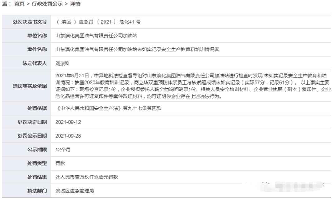 案例五:為了及格,放水加了4分,一分就值4975元! 近日,山東省濱化集團(tuán)油氣有限責(zé)任公司加油站因?yàn)閱T工安全培訓(xùn)考試成績實(shí)際57分,而記錄為61分,被濱城區(qū)應(yīng)急管理局處罰19900元!