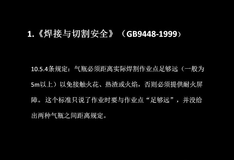 乙炔、氧氣瓶存放距離到底應(yīng)為多少才安全?關(guān)于這個(gè)問(wèn)題的答案網(wǎng)上和公眾號(hào)里眾說(shuō)紛紜,作為一個(gè)追求用標(biāo)準(zhǔn)說(shuō)話(huà)的安全人,今天對(duì)這個(gè)問(wèn)題重新進(jìn)行了研究,查到現(xiàn)行以下標(biāo)準(zhǔn):