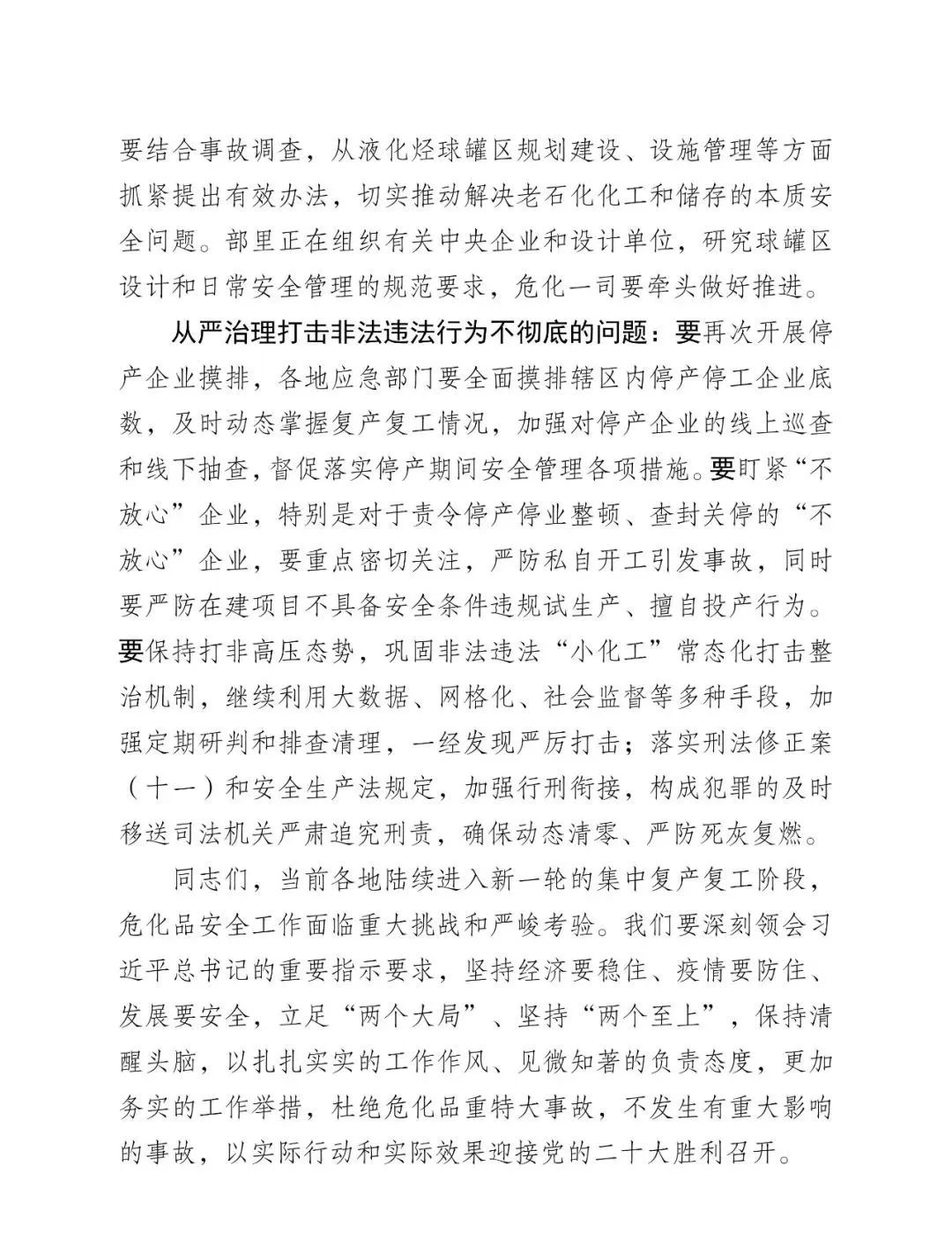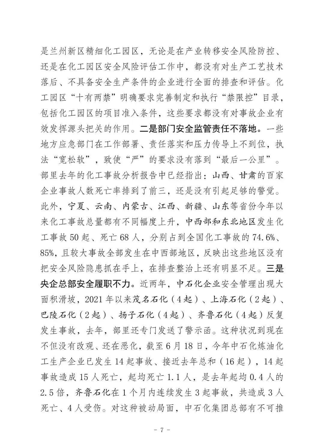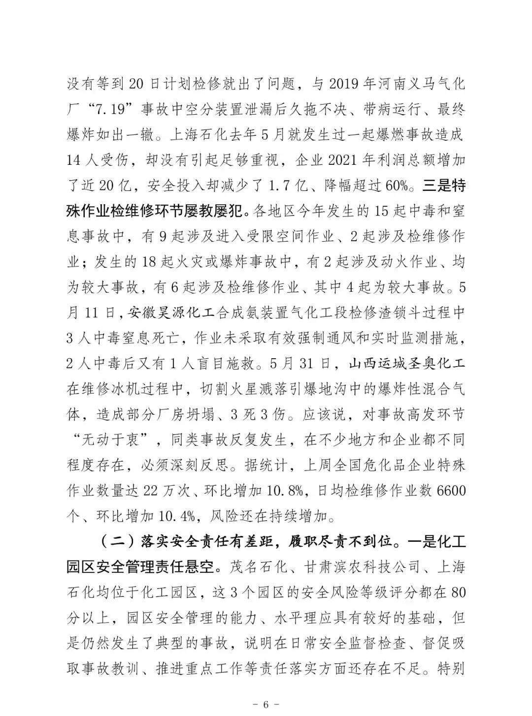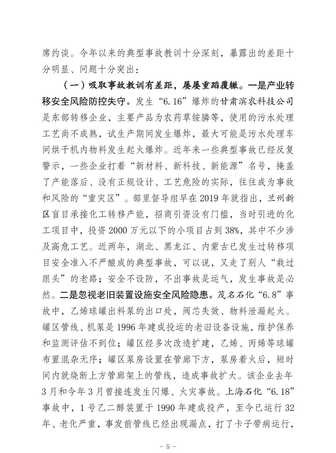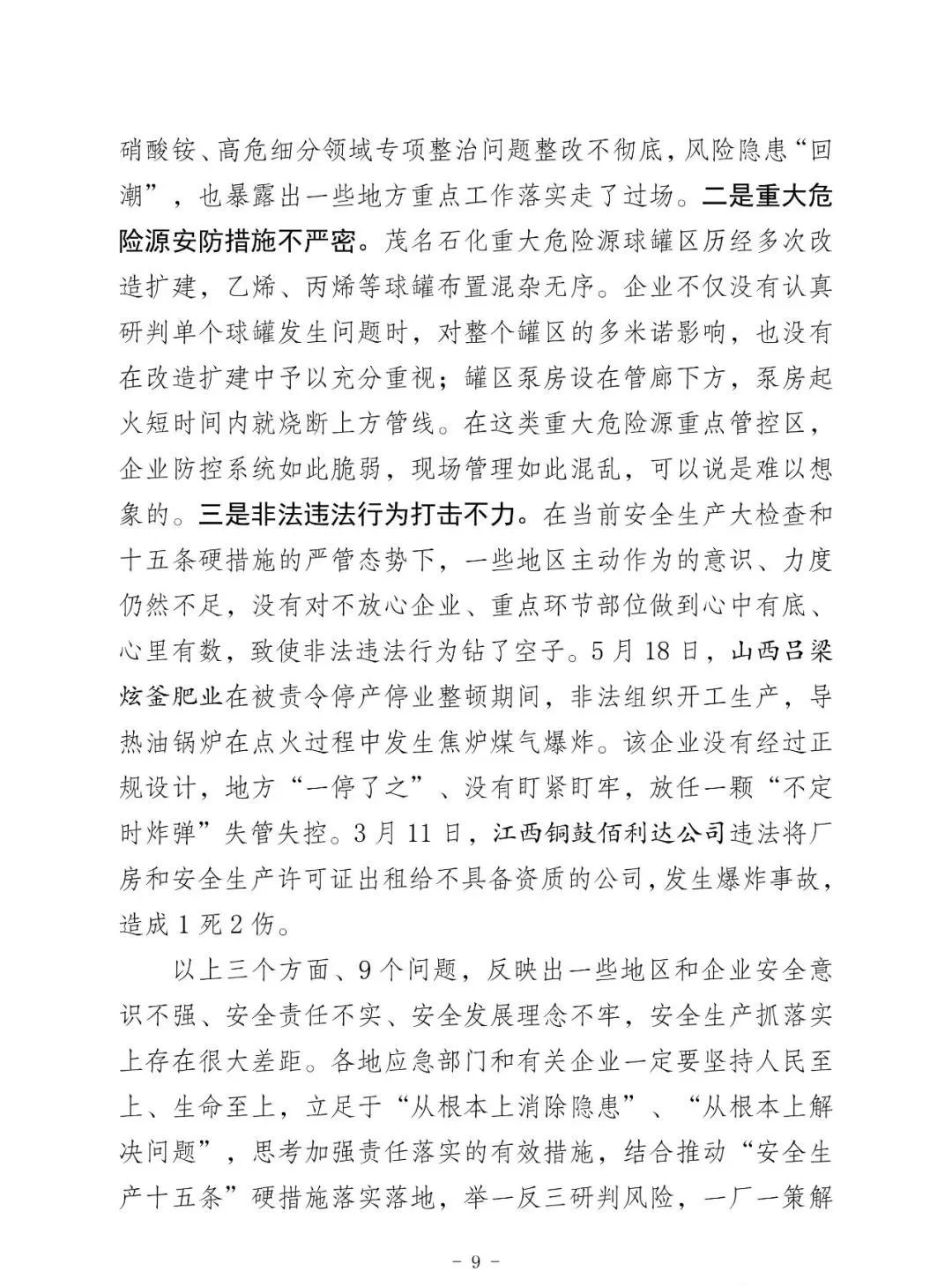 昨天上午全國;娨曤娫挄h孫廣宇副部長講話精神: ——八個從嚴(yán)治理 一是從嚴(yán)治理產(chǎn)業(yè)轉(zhuǎn)移安全風(fēng)險把關(guān)不嚴(yán)的問題。 二是從嚴(yán)治理老舊裝置風(fēng)險隱患根除不了的問題。 三是從嚴(yán)治理特殊作業(yè)和檢維修環(huán)節(jié)事故多發(fā)頻發(fā)的問題。 四是從嚴(yán)治理化工園區(qū)和應(yīng)急管理部門安全監(jiān)管責(zé)任不落實問題。 五是從嚴(yán)治理央企總部安全履職不力的問題。 六是從嚴(yán)治理集中治理不深不實的問題。 七是從嚴(yán)治理重大危險源安全風(fēng)險防控硬傷的問題。 八是從嚴(yán)治理打擊非法違法行為不徹底的問題。