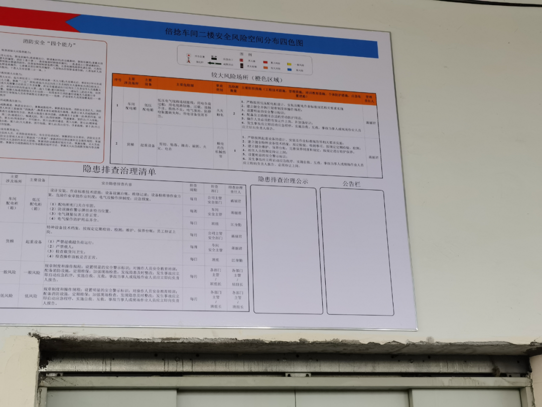 △企業(yè)一樓紡織車間風險管控四色圖上關于隱患排查公告欄無通報內容