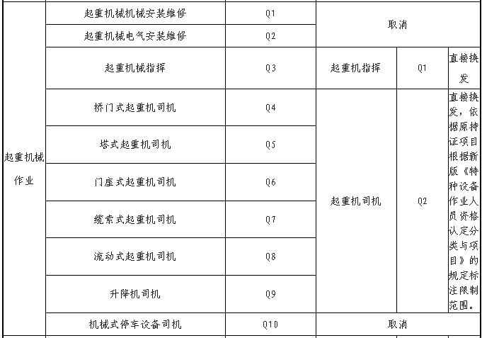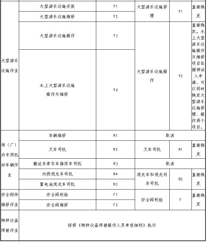 特種設(shè)備作業(yè)人員證書換發(fā)對應(yīng)表